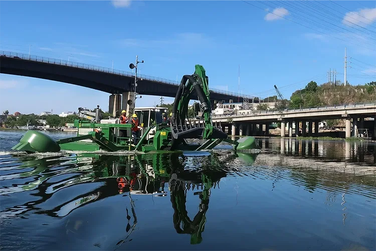 انسداد الأنهار وتصريف الفيضانات: في حالات انسداد الأنهار الداخلية الناجمة عن الأمطار الغزيرة (عمق المياه 1-3 أمتار، تحتوي على فروع وقمامة)، استخدم وضع الدلو لتنظيف الانسدادات، والتعاون مع مضخات الطين لتصريف المياه الراكدة؛ يصل حجم تصريف الفيضانات اليومي إلى 50000 متر مكعب، مما يستعيد قدرة تصريف فيضانات النهر بسرعة؛
