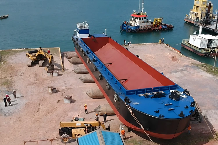 نقل الرمل والحصى: ربط مناجم الرمل الداخلية بمحطات الخلط الساحلية، ونقل الرمال إلى مواقع إنتاج الخرسانة. يقلل التصميم السفلي للقادوس المضاد للالتصاق من بقايا الرمل، ولا يتطلب التنظيف اليدوي، ويتم تقصير دورة النقل الفردية إلى 1.5 ساعة (تستغرق الصنادل التقليدية 4 ساعات)؛